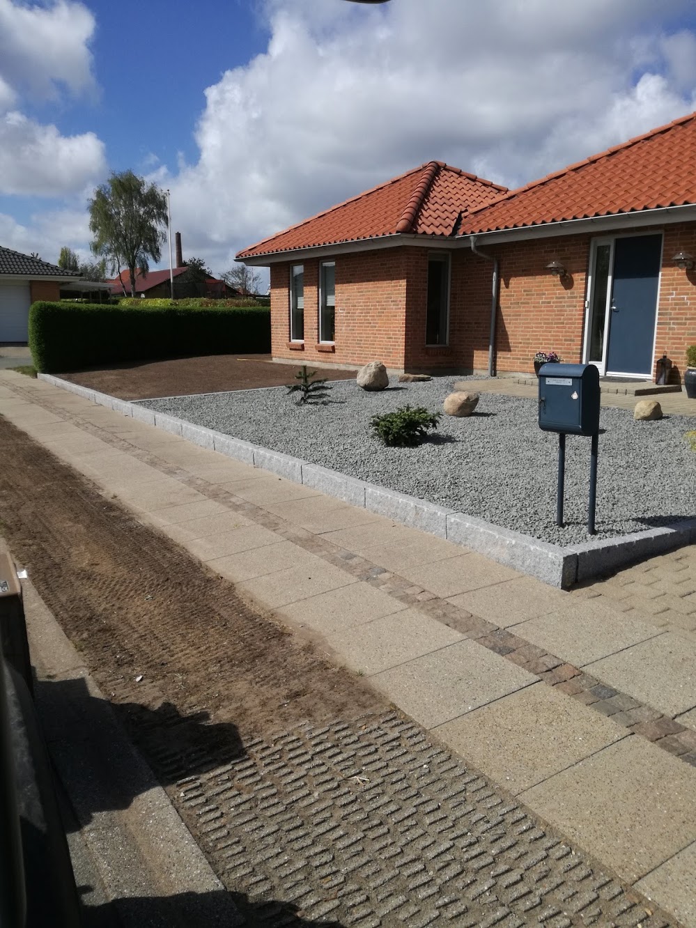 - Etablering af gangstier. Gangstier kan være med til at give et godt spil, og en variation i haven eller indkørslen. Gangstier kan laves med sten, grus, flis osv. Der er et hav af muligheder, også i forhold til udformningen, hvor man kan vælge at lave gangstien snoet og blød eller kantet og lige.